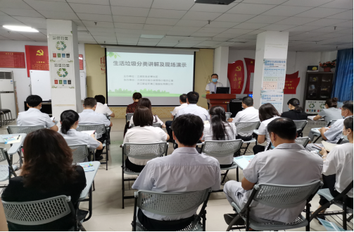 為貫徹落實(shí)國(guó)家、省、市關(guān)于生活垃圾分類(lèi)的指示精神和工作部署,更好地推進(jìn)百步亭社區(qū)生活垃圾分類(lèi)工作,7月17日上午9時(shí),江岸區(qū)垃圾分類(lèi)領(lǐng)導(dǎo)小組辦公室、百步亭社區(qū)管委會(huì)、第三方浙江聯(lián)運(yùn)環(huán)境工程股份有限公司聯(lián)合主辦“生活垃圾分類(lèi)講解及現(xiàn)場(chǎng)演示”培訓(xùn)活動(dòng)。百步亭社區(qū)管委會(huì)領(lǐng)導(dǎo)、各居委會(huì)主任、百步亭業(yè)主委員會(huì)主任、百步亭物業(yè)公司董事長(zhǎng)、各服務(wù)處經(jīng)理及主管、百步亭環(huán)球公司負(fù)責(zé)人、公共機(jī)構(gòu)代表以及社區(qū)居民代表、志愿者代表共計(jì)53人參加了此次活動(dòng)。